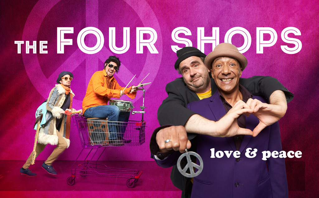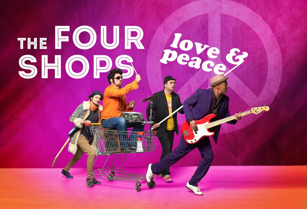 „love and peace“ Wo wird Multikulti gelebt? Bei den „Four Shops“, einer bunten, mobilen Band, die den Charme der 1970er-Jahre wieder aufleben lässt. Wenn dieses Schlagzeug anrollt, kommt jedes Publikum in Bewegung, denn die Funk- & Soul-Truppe groovt wie Hölle. Das Motto? „Gitarre statt Knarre“ .